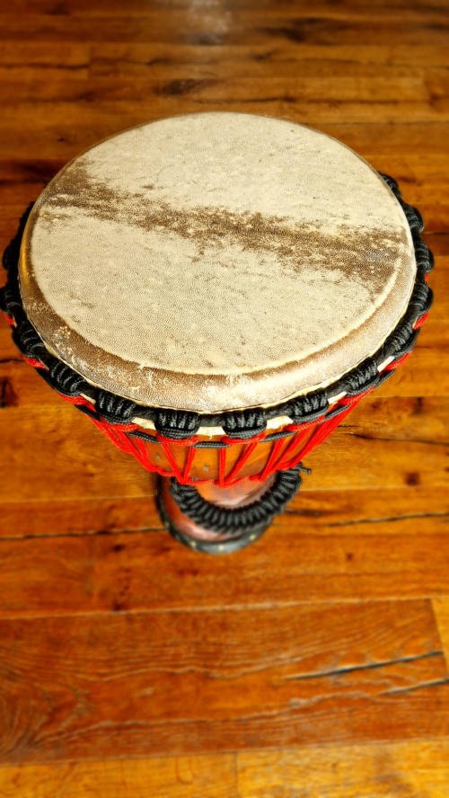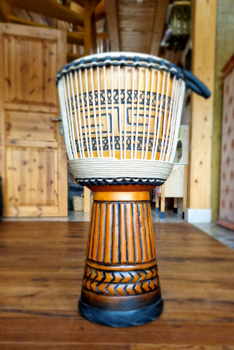 Djembe má krásny tvar a je ručne vyrábané na Slovensku z jedného kusu stredne tvrdého mahagónového dreva. Má krásny zvuk a veľké rozdiely medzi jednotlivými tónami: slap, bass, tón.
