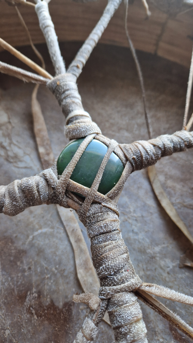 Výrobca - Ján Petrovič sa pri výrobe tohto bubna neponáhľa:) Intuitívne a precízne vyberá kožu, drevo a kameň, tak aby táto kombinácia bola najlepšie možná. Pri výrobe ďakuje Matke Zemi za drevo a kožu zvieraťa a medituje.
